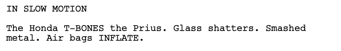 A reader emailed me and asked, "How do I format slow motion in my screenplay?"